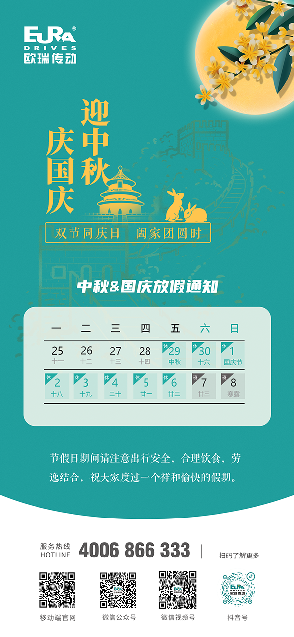 雙節同慶|歐瑞傳動中秋&國慶假期放假通知