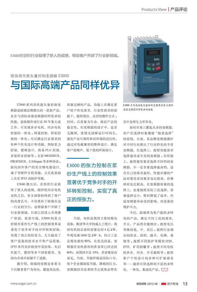 歐瑞傳動E3000變頻器:與國際高端產品同樣優異——《MM現代制造》新自動化專訪