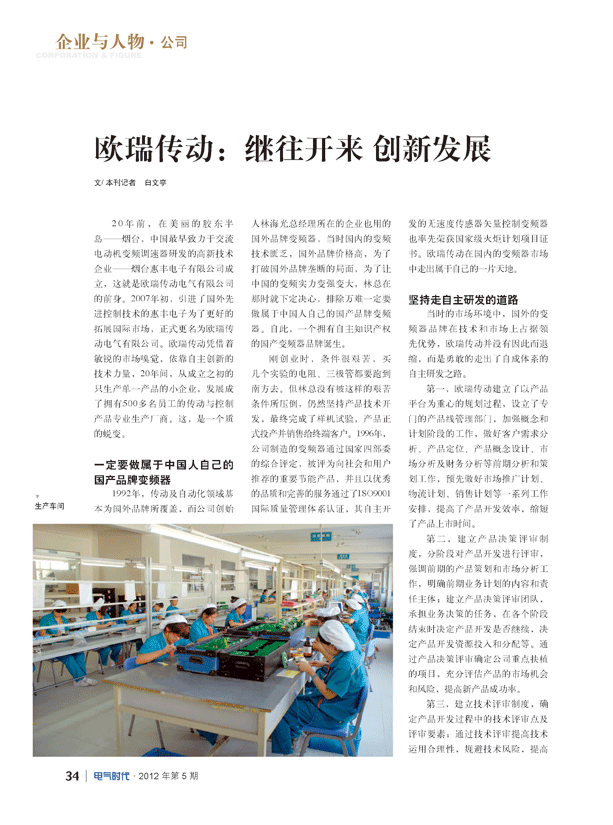 歐瑞傳動:繼往開來,創新發展——《電氣時代》專訪